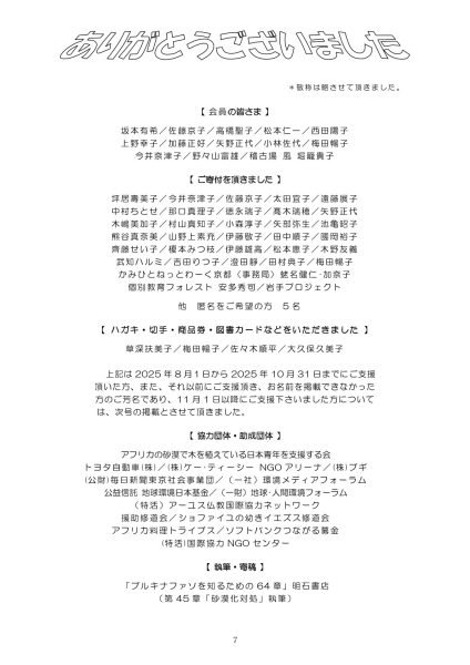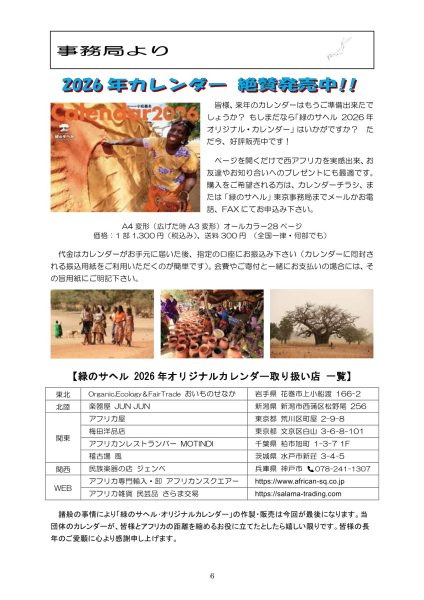 緑のサヘル東京事務局(agsj_tokyo@sahelgreen.org)にて受け付けています。